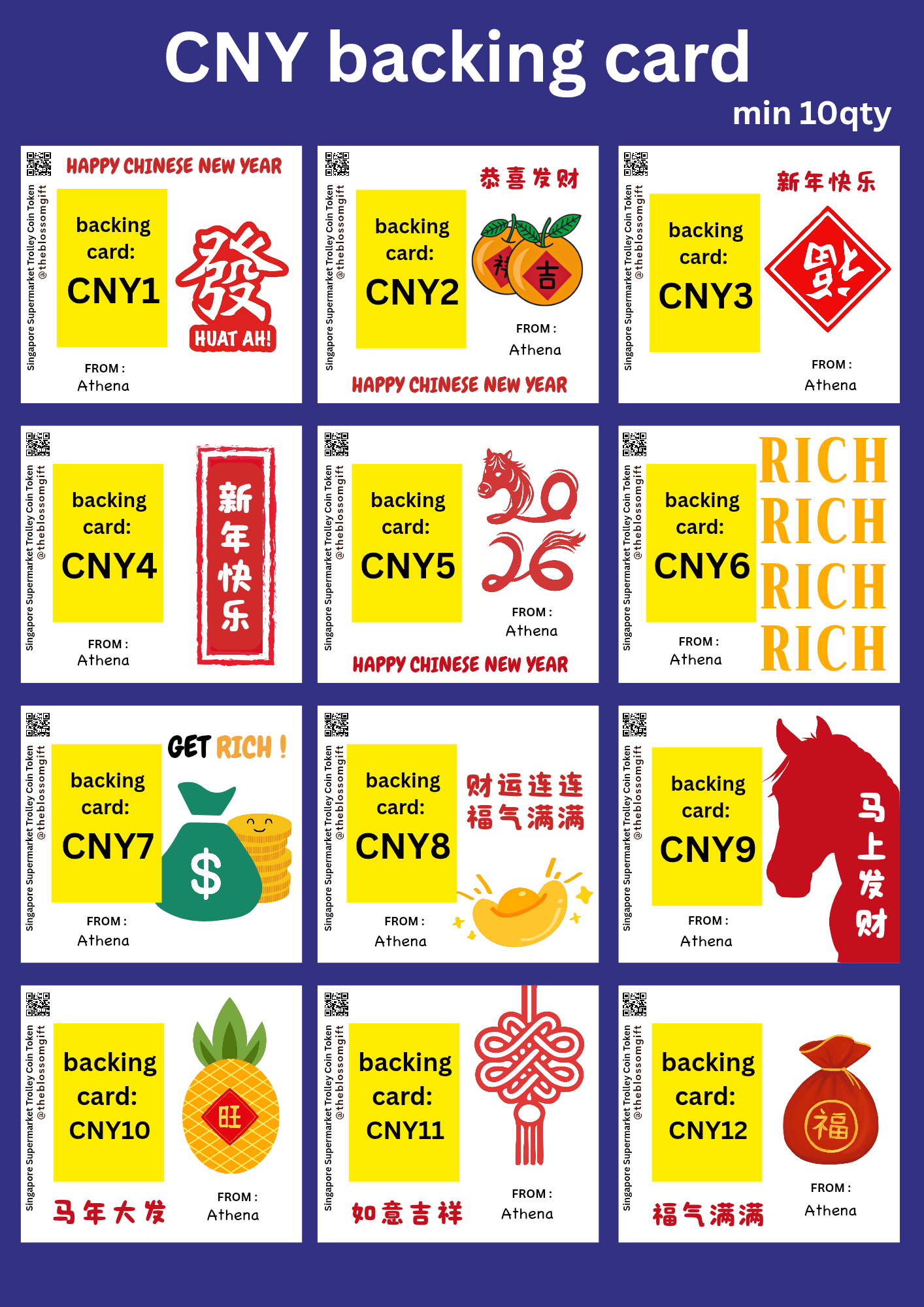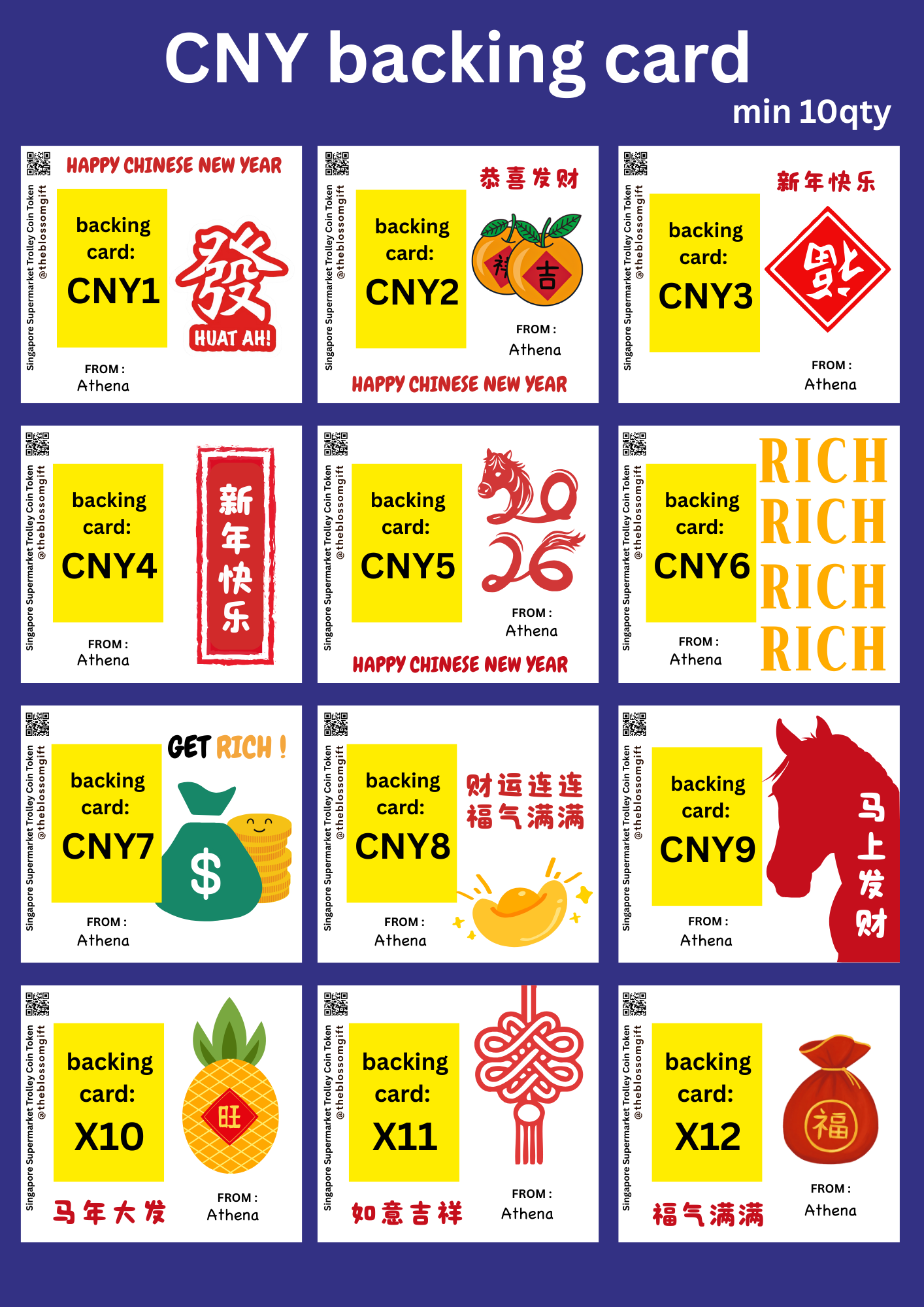🔴 Customise BACKING CARD with MIN 10 QTY ➡️ CHOOSE FROM OUR DESIGN (remember to put backing card code / From: Name OR SEND US YOUR OWN DESIGN (email theblossomgift@gmail.com . Card size 10x9cm, Do leave a space for the token if not will block your picture)